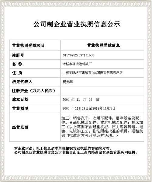 | 現(xiàn)有中,高級技術(shù)人員數(shù)名有多年的設(shè)計(jì)與制造畜禽宰殺機(jī)械的理論和經(jīng)驗(yàn) | |||||